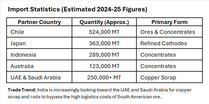 The Indian copper market is currently characterized by a "structural deficit." Despite being one of the world's fastest-growing economies, India relies on imports for nearly 90-95% of its copper concentrate requirements.