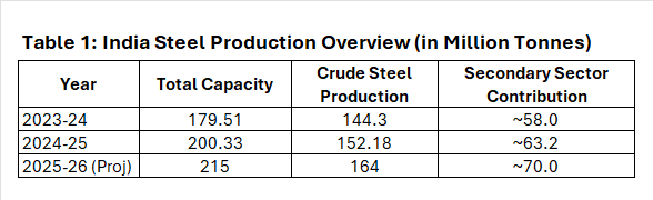 The secondary steel sector is no longer just a "supplement" to India’s massive integrated steel plants; it is the vital backbone of the nation's construction and infrastructure narrative. Comprising over 1,000 units including Induction Furnaces (IF) and Electric Arc Furnaces (EAF), this sector accounts for approximately 40% of India’s total crude steel production.